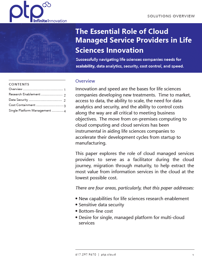 Cloud managed service providers (CMSPs) offer businesses a way to navigate the complexities of cloud computing, providing expertise and support for critical tasks like security, scalability, cost control, and data analytics. Here are 10 reasons why life sciences companies, and other organizations, should consider working with a cloud managed service provider.
