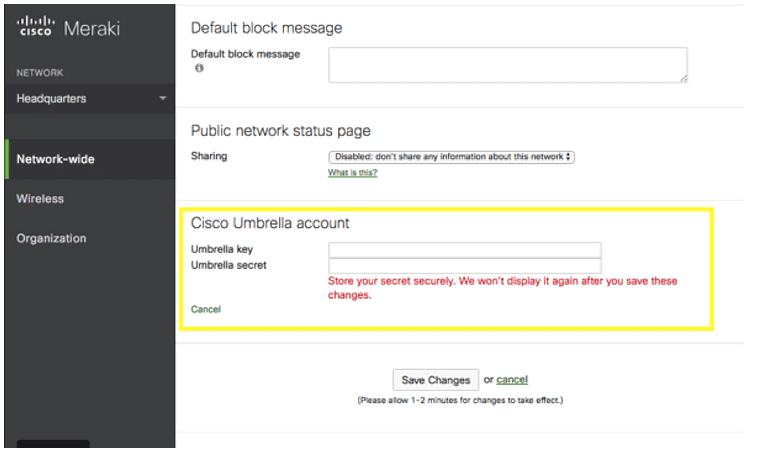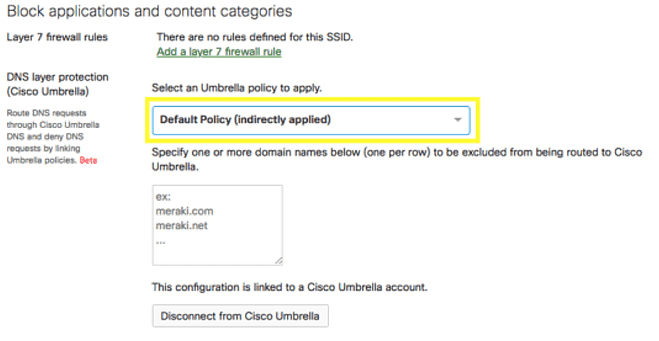 There is no additional cost or charge for taking advantage of this integration (which is available to all Meraki wireless customers who have upgraded to our latest MR26.x firmware), but Meraki wireless customers who wish to integrate with Umbrella will need a separate Umbrella license and account with that service.
