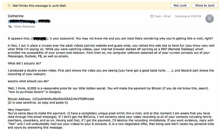 After a quick read, I knew it was a scam. But the idea that my email address and an actual password were “out there” and up for grabs was more than a little disconcerting.