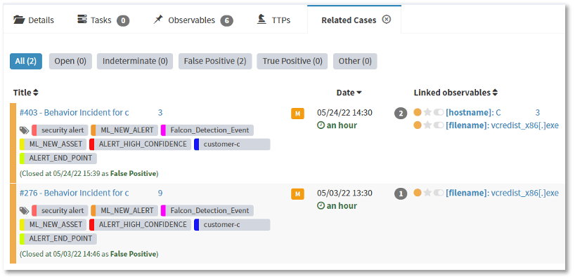 Next, the list of related incidents can be expanded immediately to see exactly what observation details match with the current case to assist in handling of the ticket.